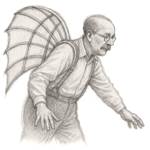 he took flying on faith, had convinced himself he was a bird hollow-boned and floating